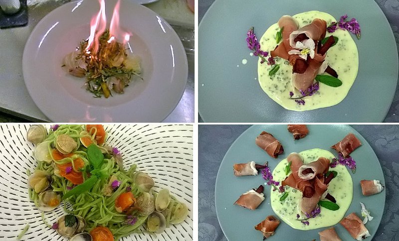 Piatti preparati dagli chef per la cena di fine corso di cucina